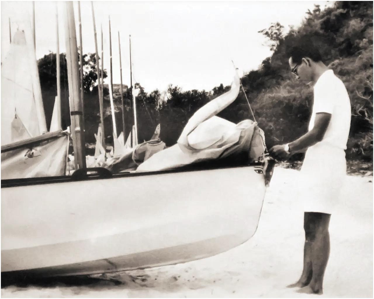 พุทธศักราช ๒๕๐๙ ทรงเรือใบ TH ๑๘ “เวคา” ข้ามอ่าวไทยจากอำเภอหัวหิน จังหวัดประจวบคีรีขันธ์ ไปที่หาดเตยงาม อำเภอสัตหีบ จังหวัดชลบุรี และทรงนำธงราชนาวิกโยธินมาปักที่หาดเตยงาม๒ เรือใบสากลประเภทโอเค (International O.K. Class)