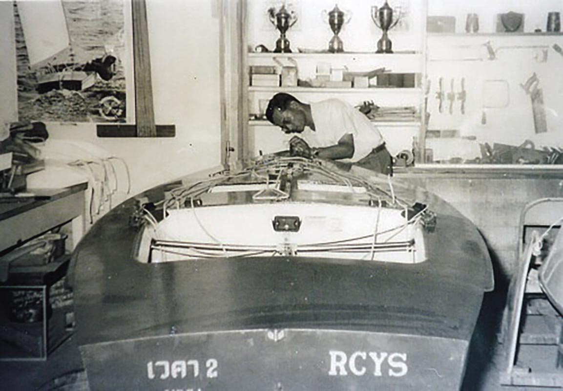 พระบาทสมเด็จพระเจ้าอยู่หัวทรงมีความสนพระราชหฤทัยที่จะออกแบบและต่อเรือใบด้วยพระองค์เอง ในพุทธศักราช ๒๕๐๖ ระหว่างเสด็จพระราชดำเนินแปรพระราชฐานไปประทับแรมที่วังไกลกังวล อำเภอหัวหิน จังหวัดประจวบคีรีขันธ์ ทรงกรรเชียงเรือใบในทะเลหัวหิน โดยหม่อมเจ้าภีศเดช รัชนี ได้ตามเสด็จด้วยเรือใบที่ทรงต่อเอง พระบาทสมเด็จพระเจ้าอยู่หัวทอดพระเนตรเห็นเรือใบดังกล่าว จึงมีพระราชประสงค์จะทรงต่อเรือด้วยพระองค์เอง ทรงเริ่มดำเนินการศึกษาเกี่ยวกับเรือใบสากล ทรงออกแบบ ทดลองและต่อเรือใบขึ้นที่ห้องทรงงานช่างภายในพระตำหนักจิตรลดารโหฐาน พระราชวังดุสิต