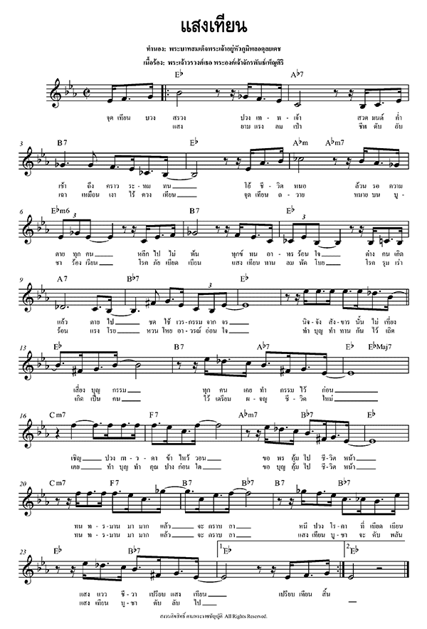 ทำนอง: พระบาทสมเด็จพระเจ้าอยู่หัวภูมิพลอดุลยเดช